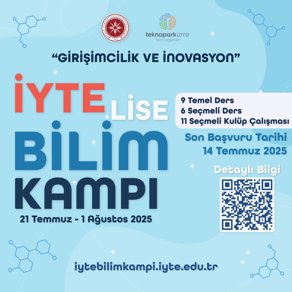 21 Temmuz – 1 Ağustos 2025 tarihleri arasında İYTE Kampüsünde gerçekleştirilecek olan Lise Yaz Kampı, İYTE ve Teknopark İzmir’in işbirliği ile “Girişimcilik ve İnovasyon” temasıyla gençlerimizi alanında uzman akademisyenlerle bir araya getirerek, onları araştırma yapmaya teşvik etmek ve fikirlerini hayata geçirme yolculuklarında rehber olmayı hedeflemektedir.